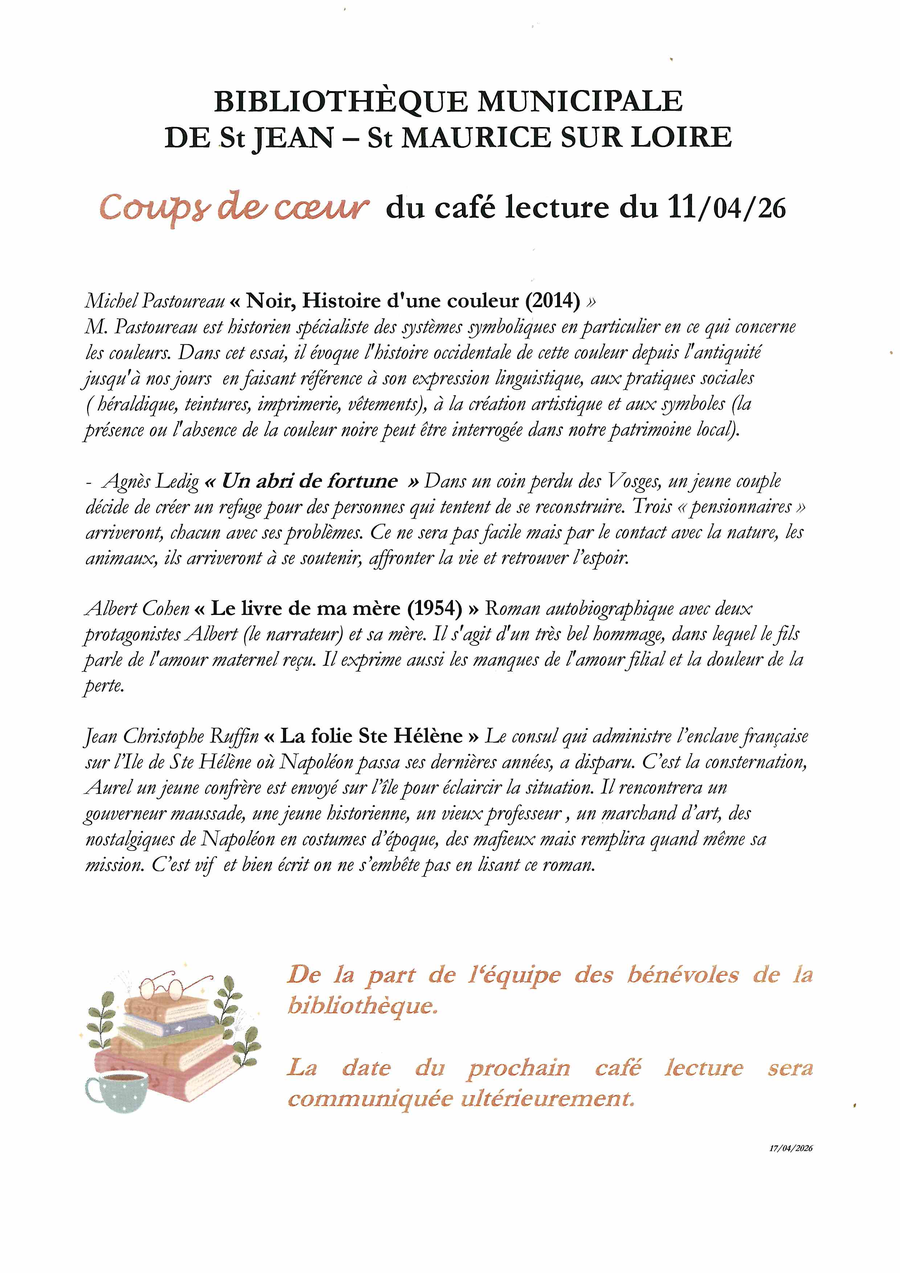 (Rappel horaires : jeudi de 16 h30 à 18 h. samedi de 10h. à 12 h.)