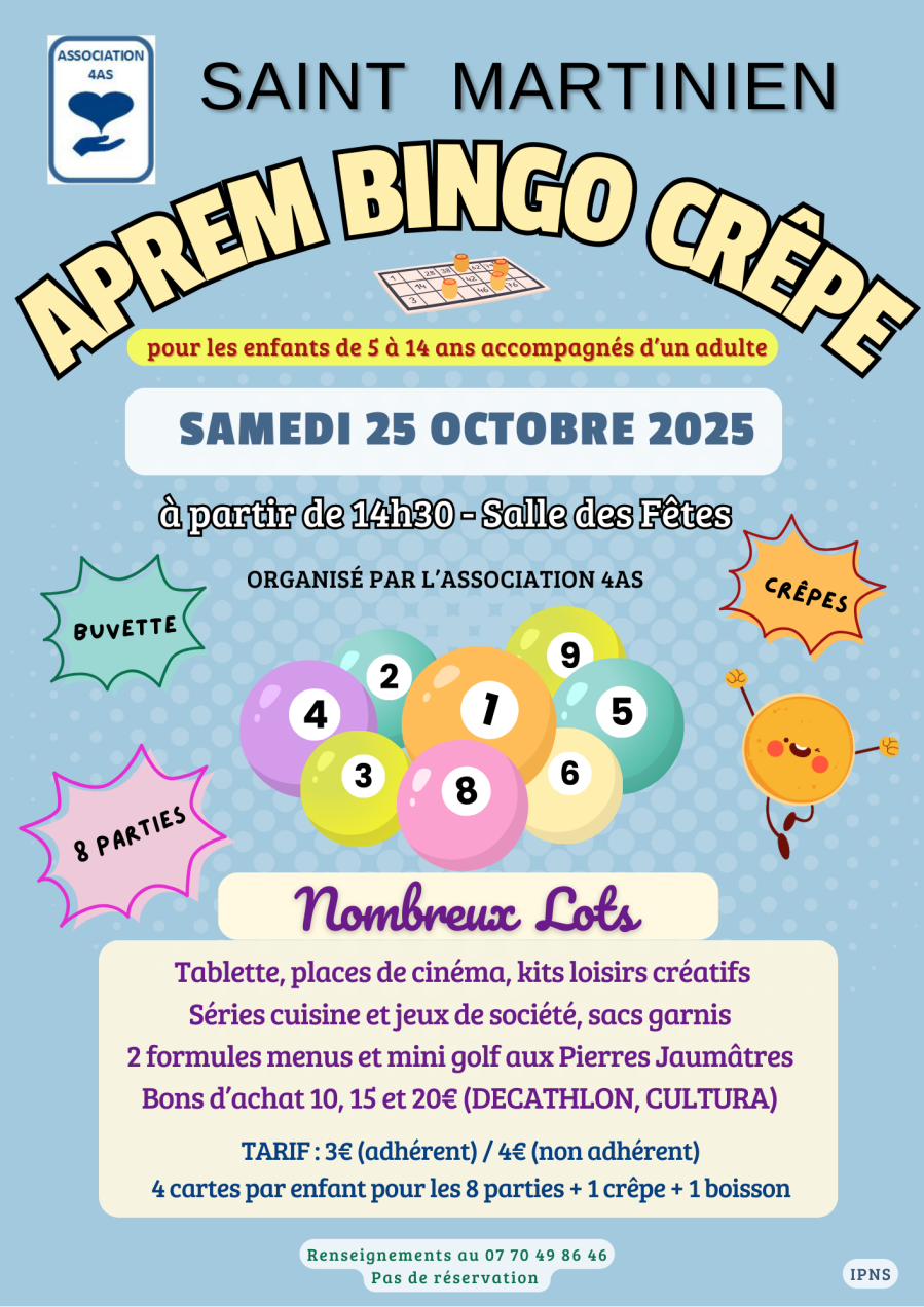 - veillée-jeux le vendredi 21 novembre à la salle des fêtes de St Martinien à partir de 19h00