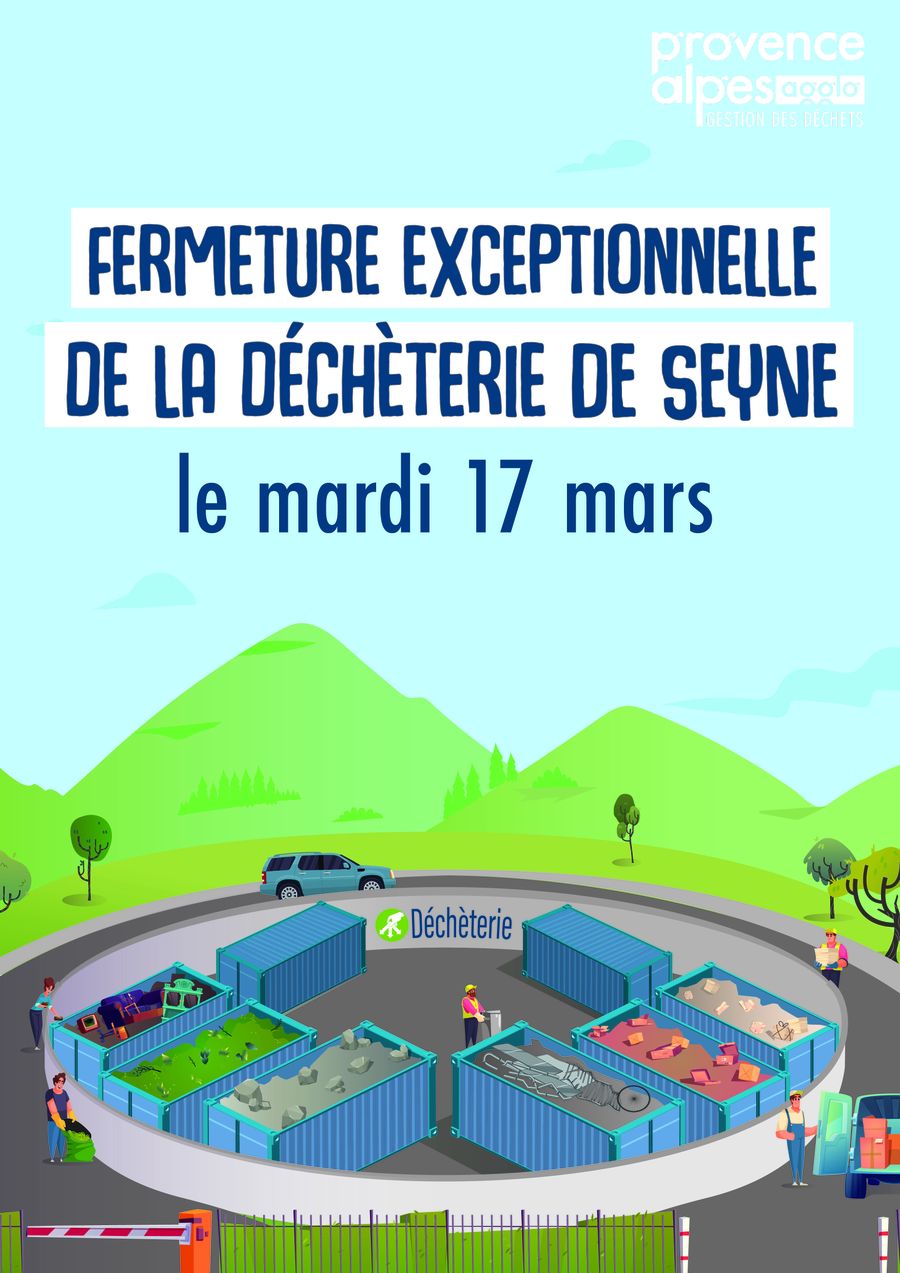 En raison de travaux la déchèterie de Seyne sera exceptionnellement fermée le Mardi 17 Mars 2026