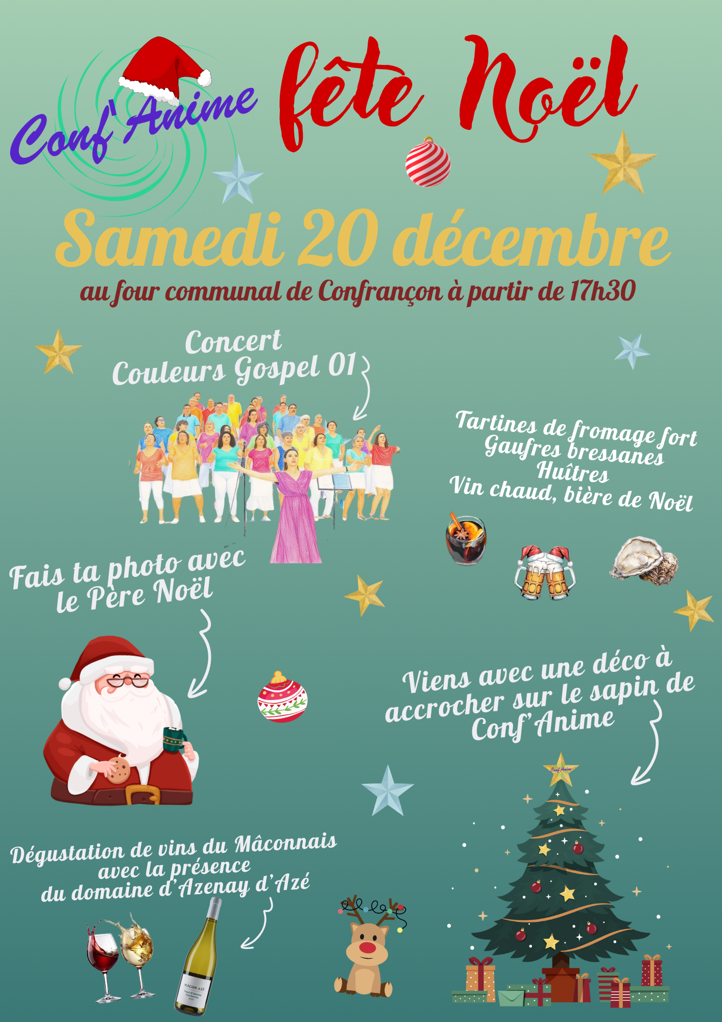 Dégustation de vins, tartines de fromage fort, gaufres bressanes, bière de Noël....