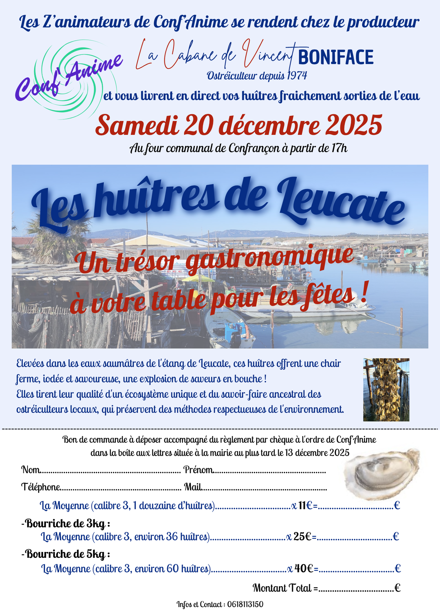Les huîtres de Leucate avec dégustation (commandes à passer au plus tard le 13/12)