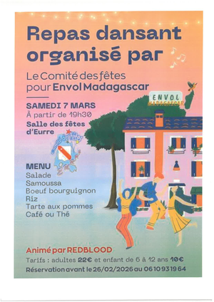 Réservations au 06 10 93 19 64 jusqu'au 28 février, et via internet : www.helloasso.com/associations/comite-des-fetes-de-eurre