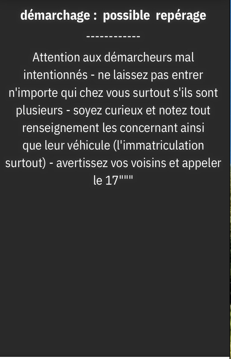 - et surtout ne pas hésiter à composer le n° 0546028017 ou le 17 afin de signaler tout comportement suspect."