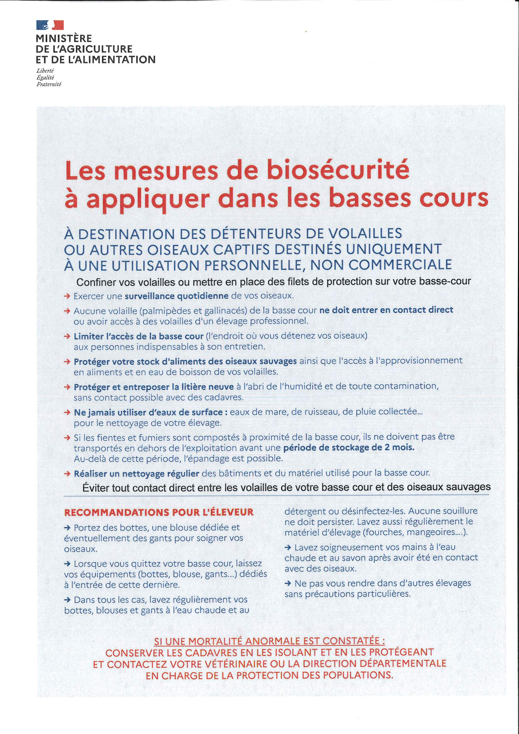 ⚠️ Risque élevé concernant l'influenza aviaire ⚠️