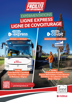 La ligne de transport en commun MOBIUS Express, lancée par GrandAngoulême, vient compléter l’offre existante comprenant le transport à la demande möbius et les lignes de car de la région Nouvelle-Aquitaine.