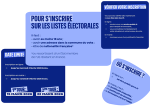 ✅ Pour pouvoir voter, vous devez être inscrit(e) sur la liste électorale au plus tard le mercredi 4 février en ligne ou le vendredi 6 février 2026 en mairie