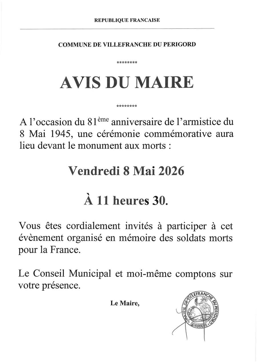 Le bureau de poste de Villefranche sera fermé mercredi 29/04/2026 après-midi et le samedi 2 mai toute la journée.