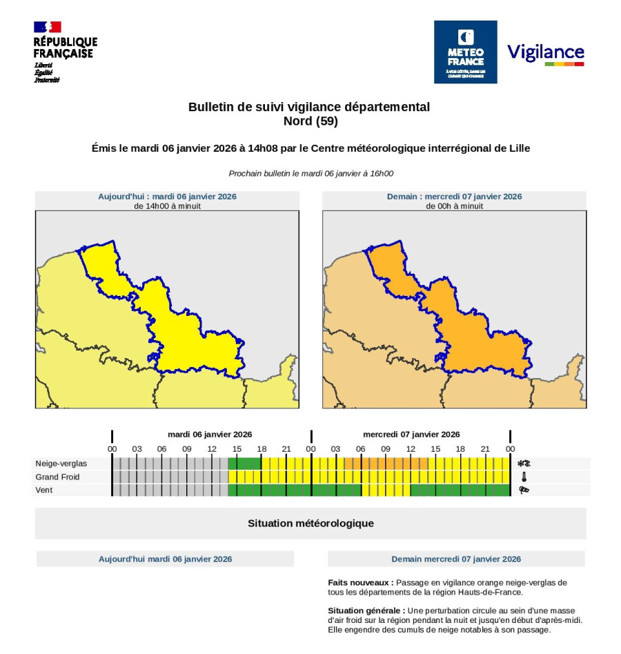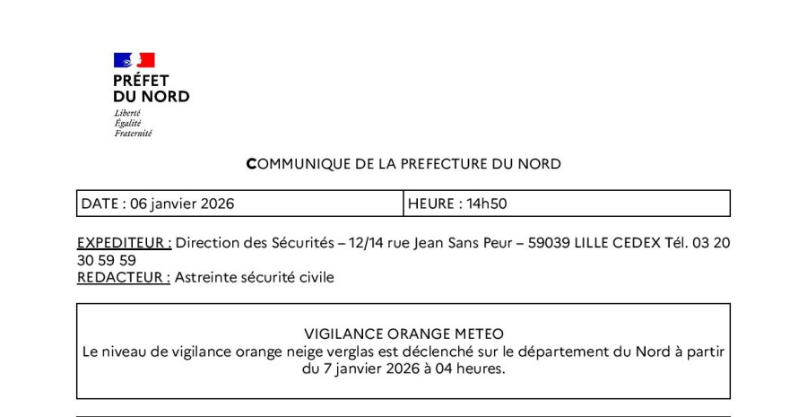 Communiqué de la préfecture du Nord : vigilance neige /verglas -niveau orange