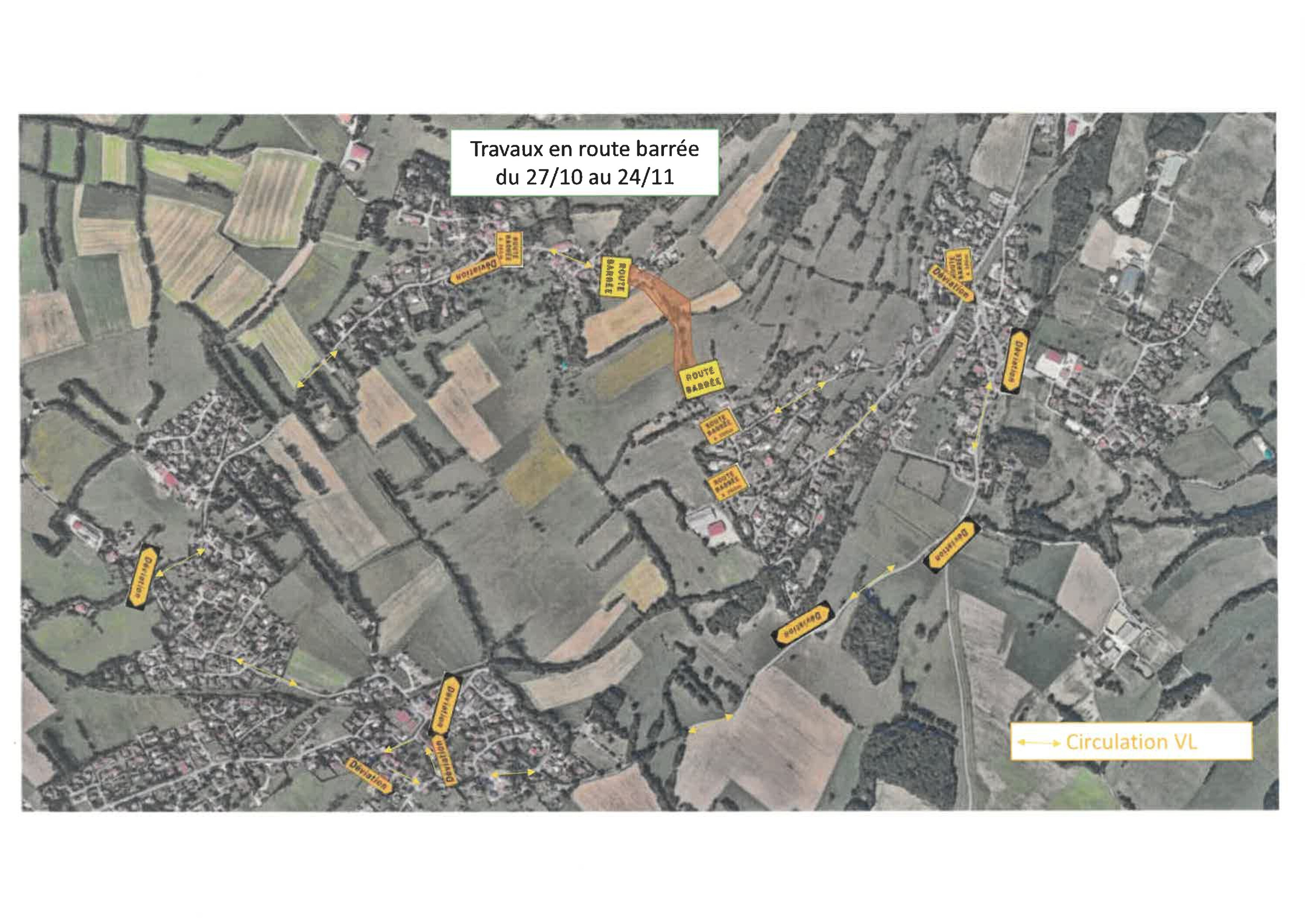 Pendant toute la période des travaux, la route de Vesancy sera mise en sens unique descendant, depuis la ferme jusqu’à l’intersection avec la D984C (Gex–Divonne).
