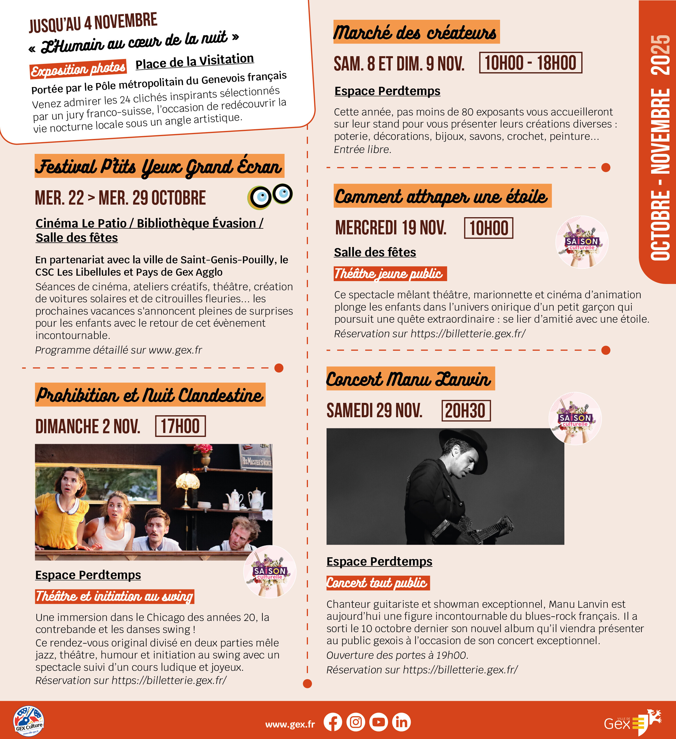 le 29 octobre – à l’Esplanade du Lac de Divonne-les-Bains – de 18h30 à 20h30