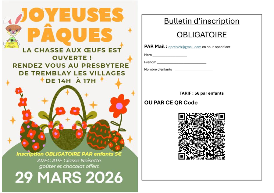 29 MARS au Présbytère de Tremblay-les-Villages.
