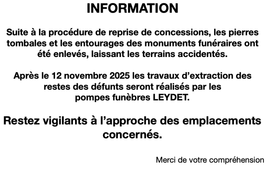 Suite à la procédure de reprises de tombes, d'importants travaux d'enlèvement de pierres tombales ont laissé des terrains accidentés.