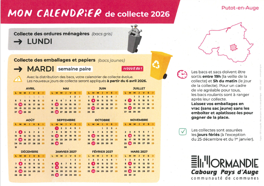 Ci-dessous le calendrier des dates de ramassage et petits rappels sur le tri des déchets