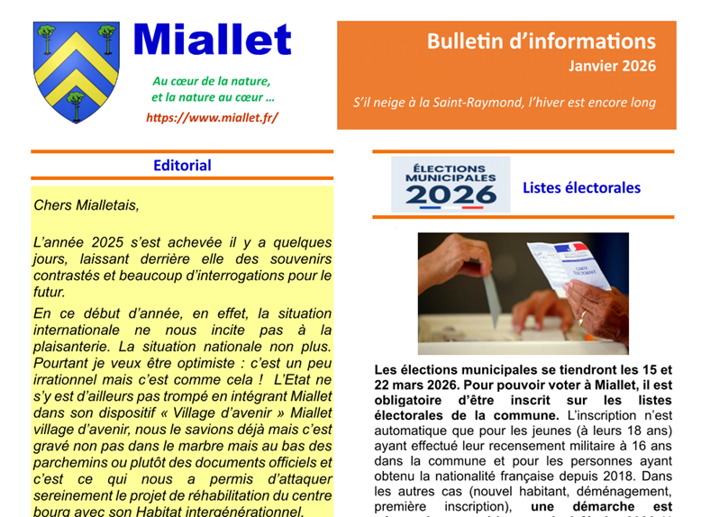 Vous pouvez aussi déjà le consulter sur le site internet de la Commune et y retrouver les numéros précédents, ainsi que bien d'autres informations ...