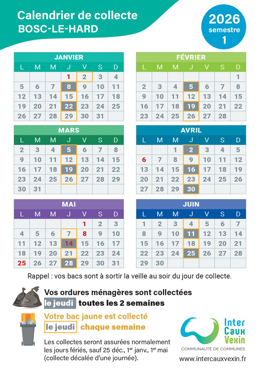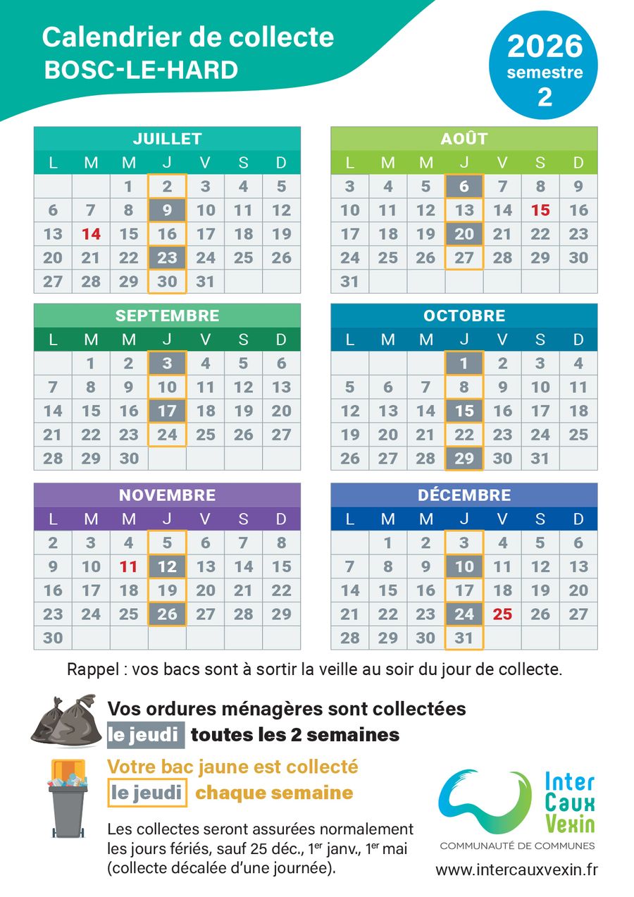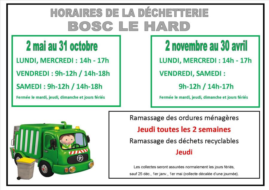 Une erreur s'est glissée dans le dernier "Bosc le Hard Mag" concernant les dates de collecte des ordures ménagères.