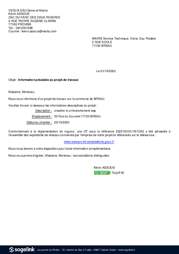 Contacter la mairie de Bréau