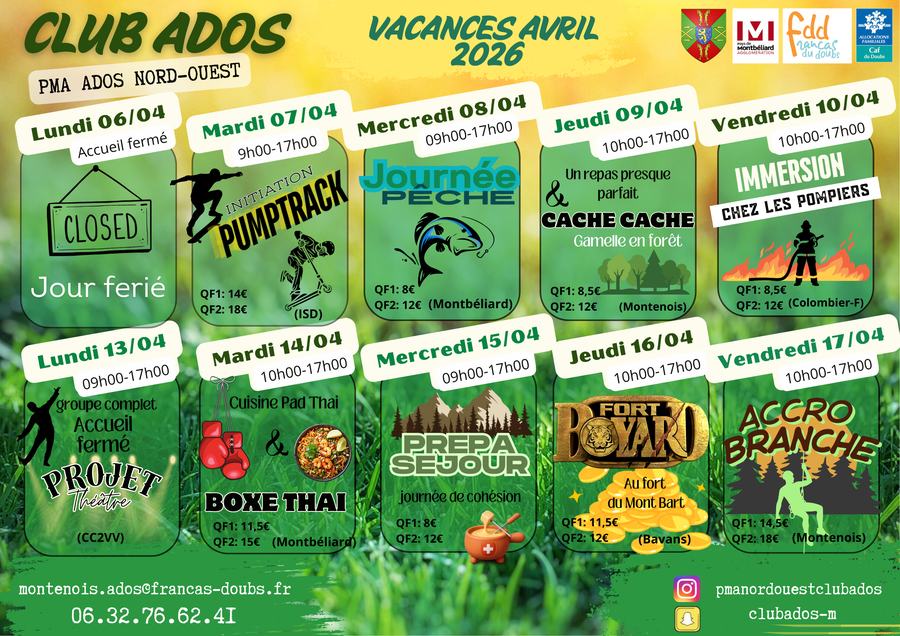 Planning des activités pour les vacances d'avril
