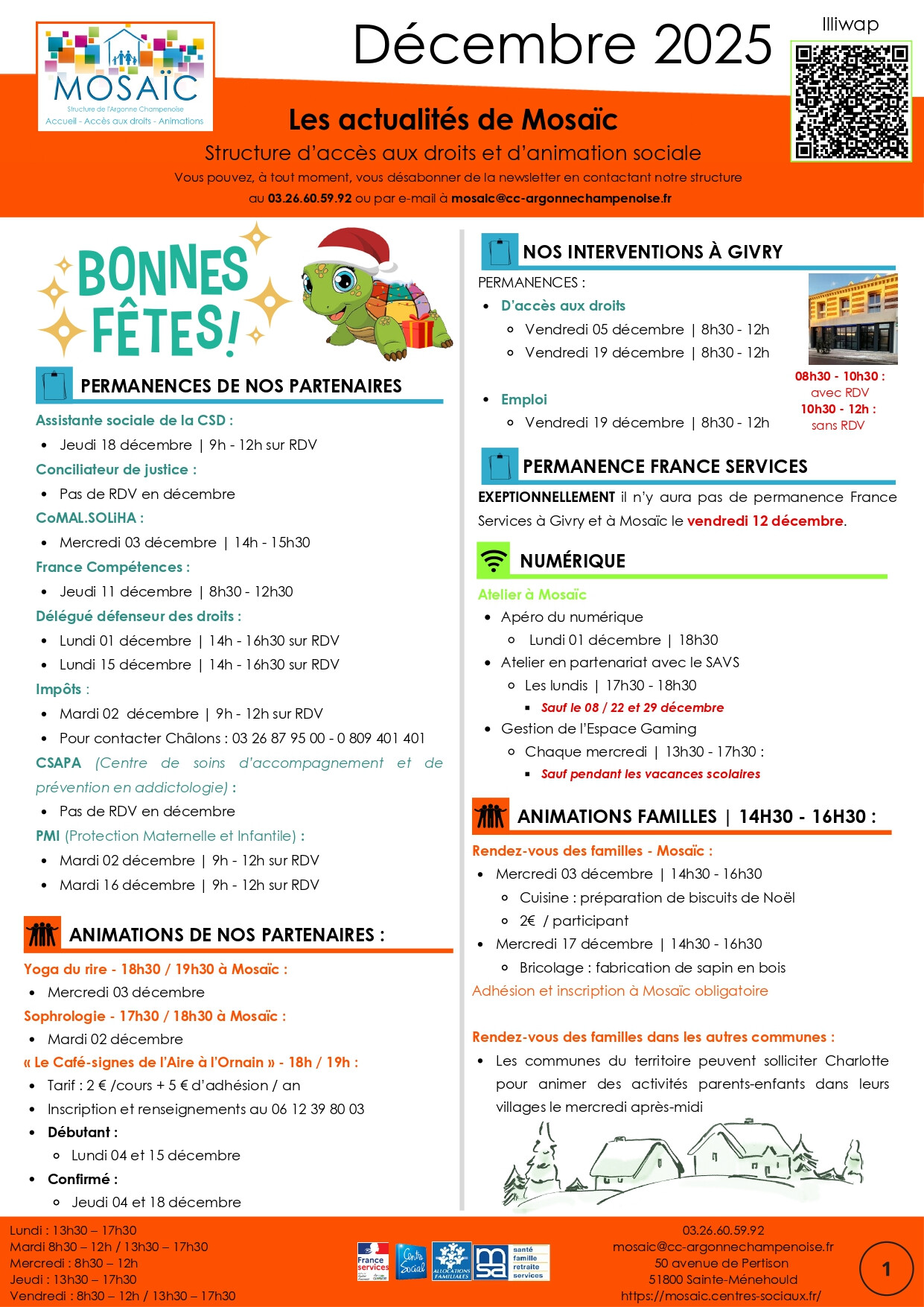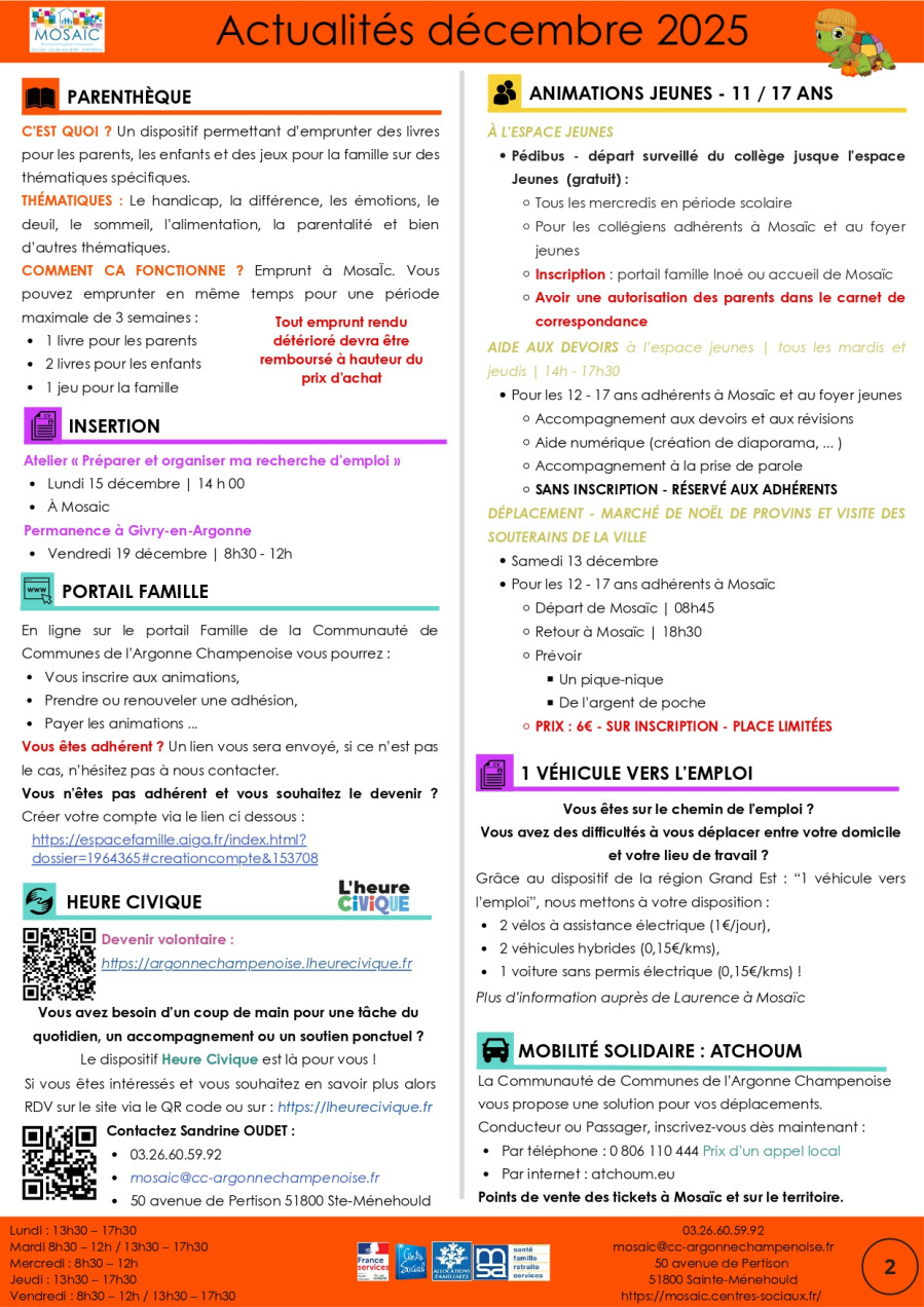 lundi 15 septembre 2025 de 19h à 20h salle intercommunale de Ville sur Tourbe.
