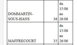 Je vous prie de trouver ci-après le planningprévisionnel de déploiement des compteurs équipés en télérelève sur le périmètre de la zone Centre de la Communauté de Communes Argonne Champenoise, par communes :