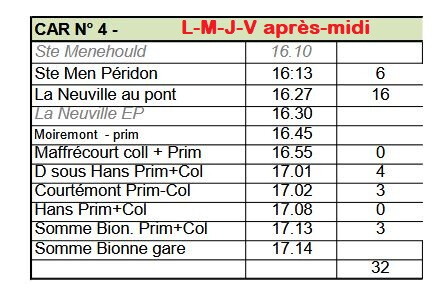 Nous vous prions de trouver ci-joint les horaires des circuits scolaires vers l’école de La Neuville au Pont.