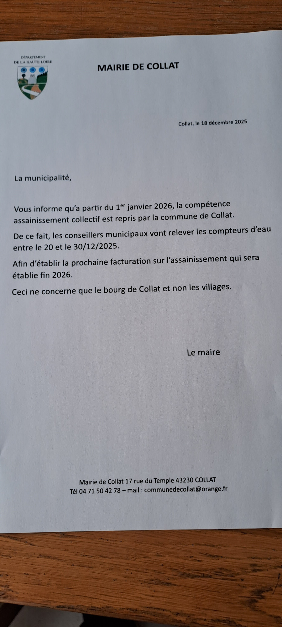 Le SGEB a constaté une diminution conséquente de la production d'eau potable sur le bourg de Collat.