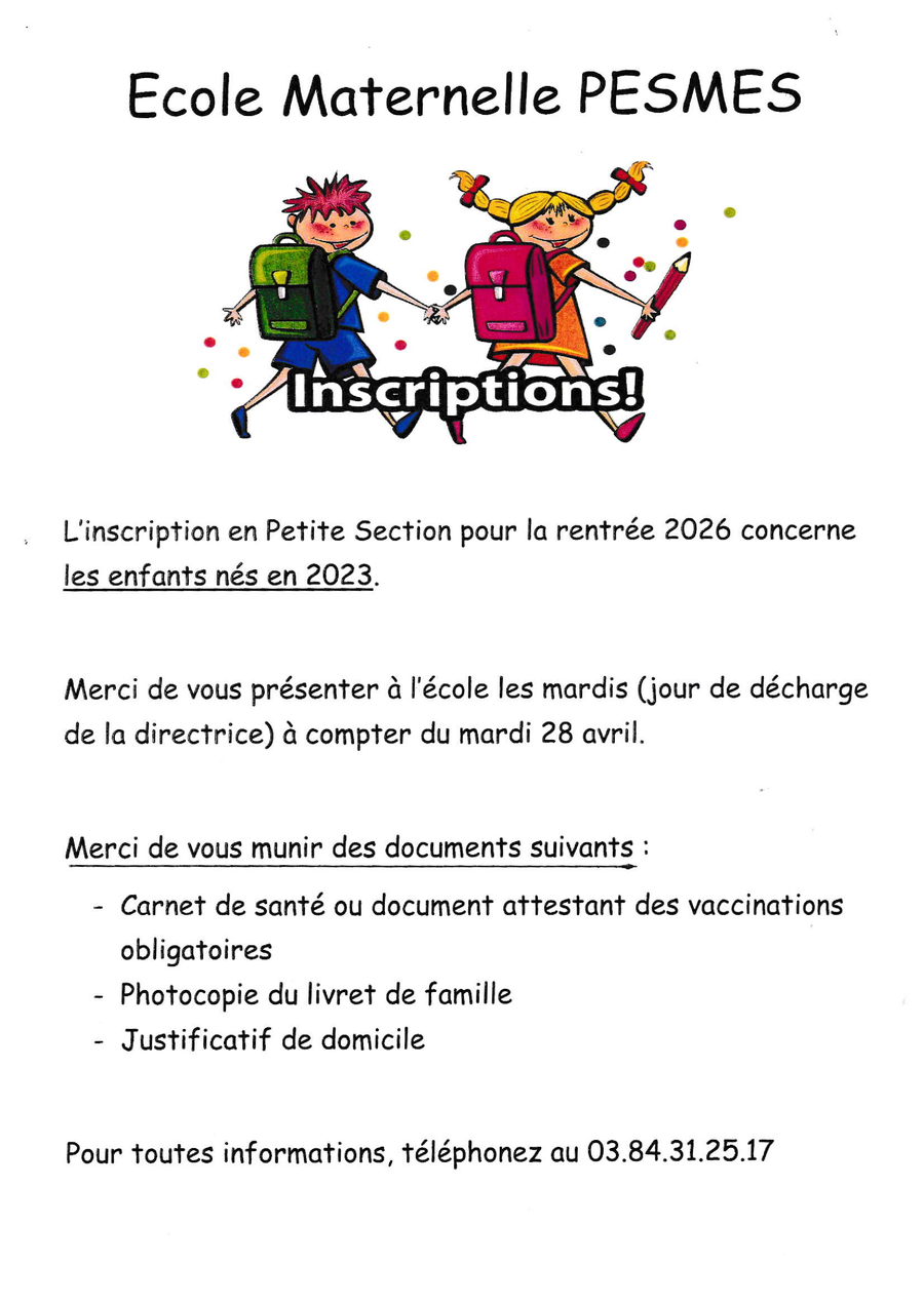 L'inscription en Petite Section pour la rentrée 2026 concerne