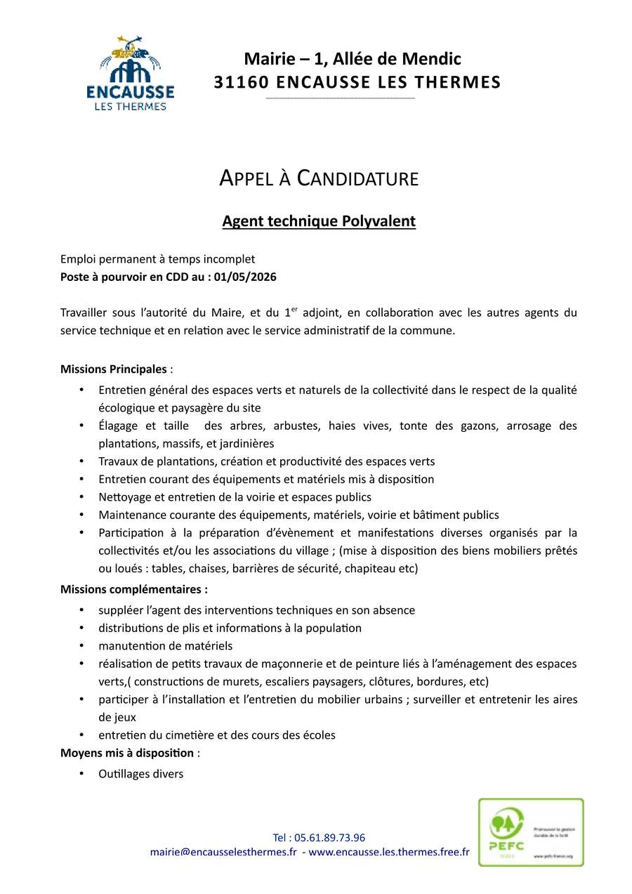 Contacter la Mairie :