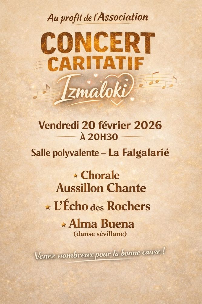Concert au profit de l'association IZMALOKI. L'association a été créée en soutien à Malo, 13 ans, atteint de deux maladies génétiques rares (encéphalopathie épileptique infantile précoce et la maladie de Bukley).