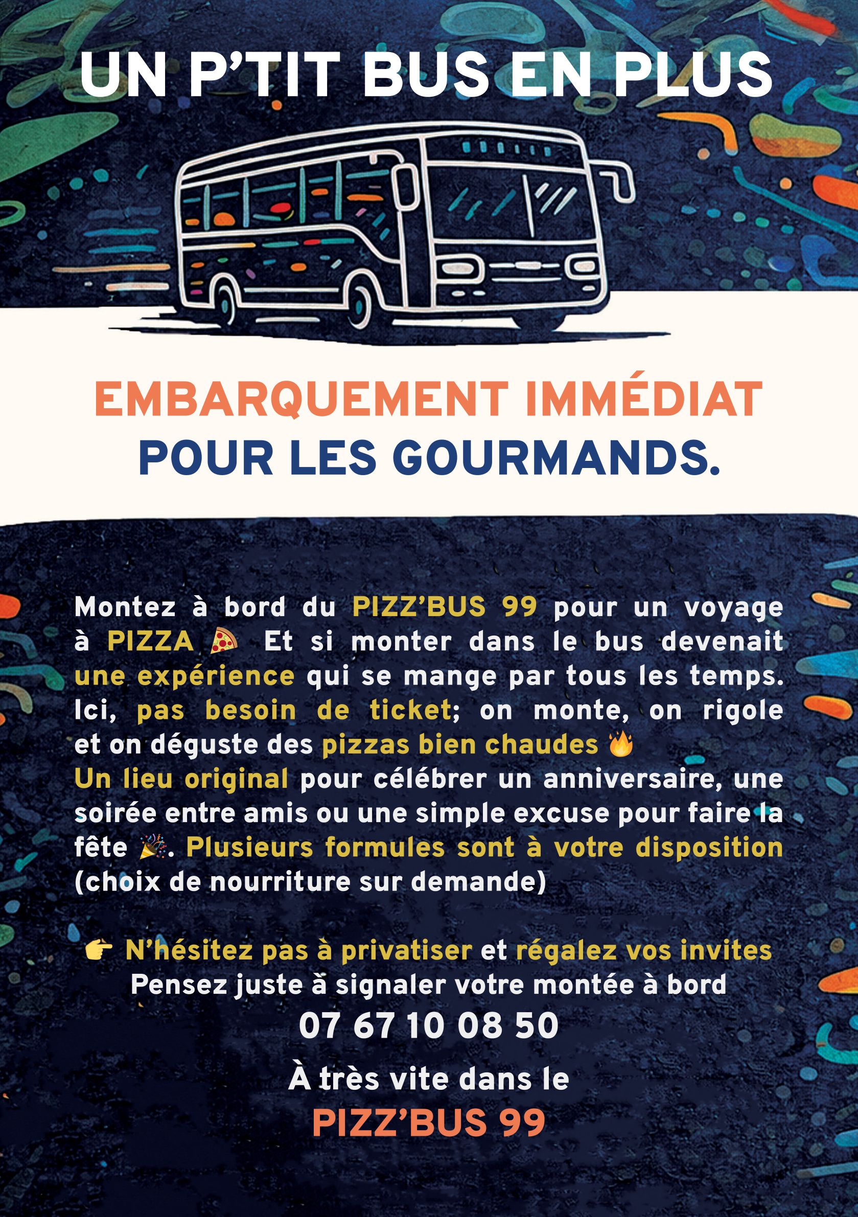 Nouveau cette année: dégustez les pizzas🍕 sur place dans un 🚌 autobus