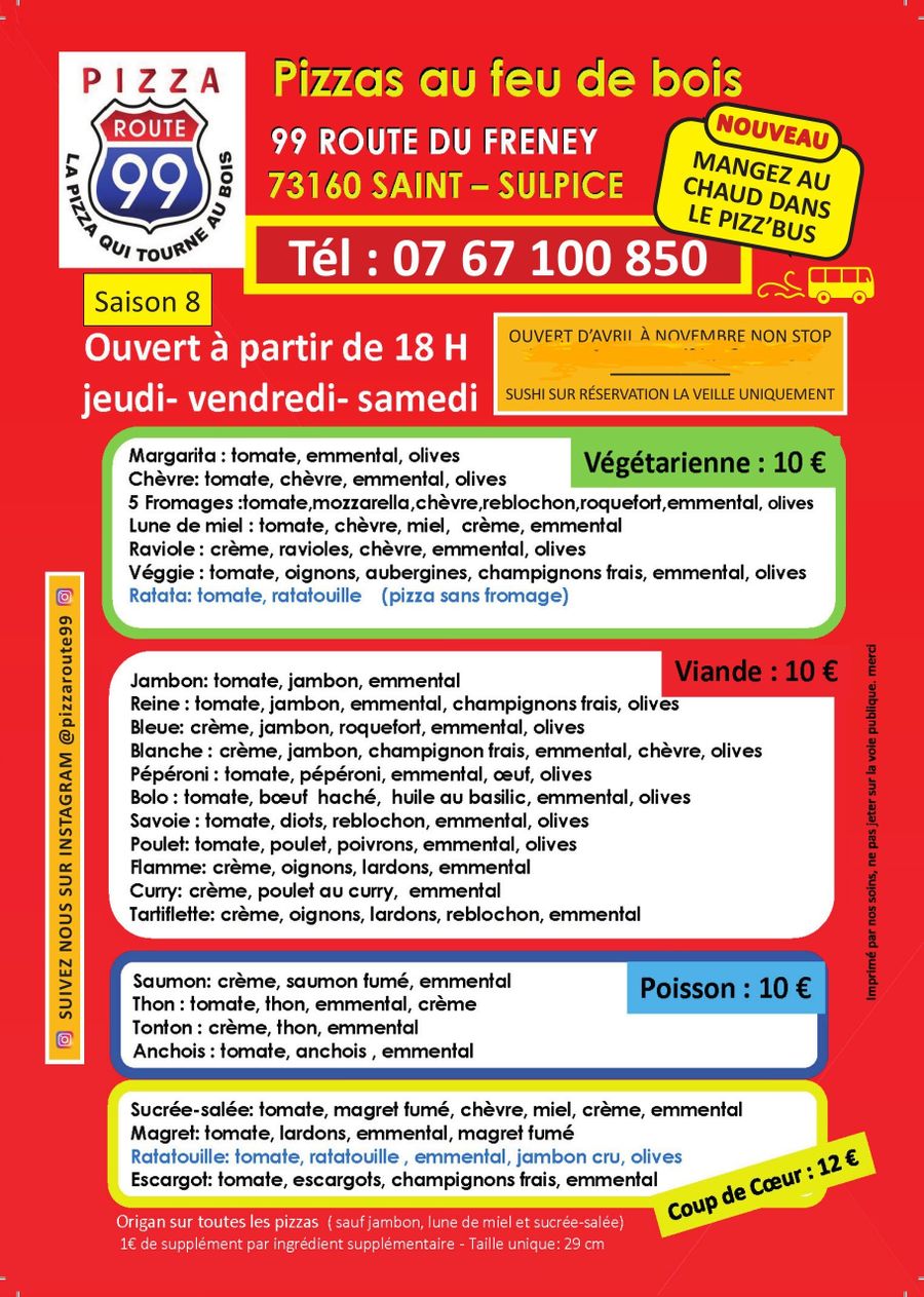Réouverture de Route 9️⃣9️⃣️ et ses pizzas à Saint Sulpice (Le Freney) depuis le 🗓️2 avril !