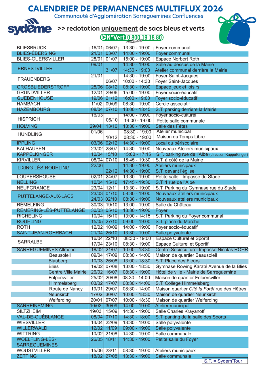 Ces horaires sont disponibles sur notre site internet www.agglo-sarreguemines.fr, en déchèterie ou au 0 800 19 18 80.