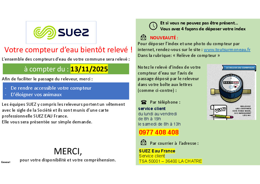 Pour plus d'informations, vous pouvez contacter SUEZ