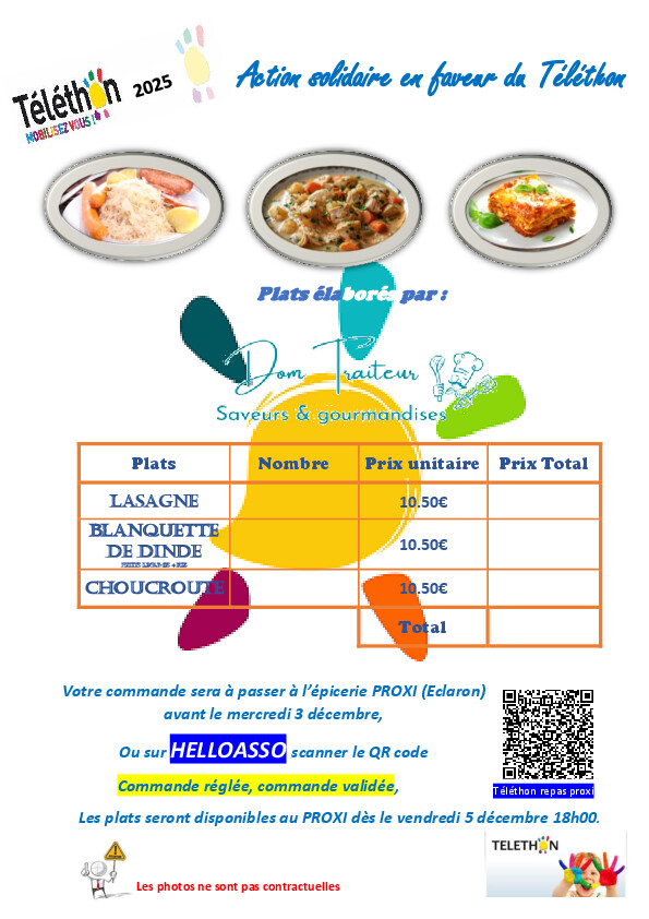 Mais également : Vente de plats à emporter au magasin Proxy à Eclaron, commandes avant le 3 décembre....
