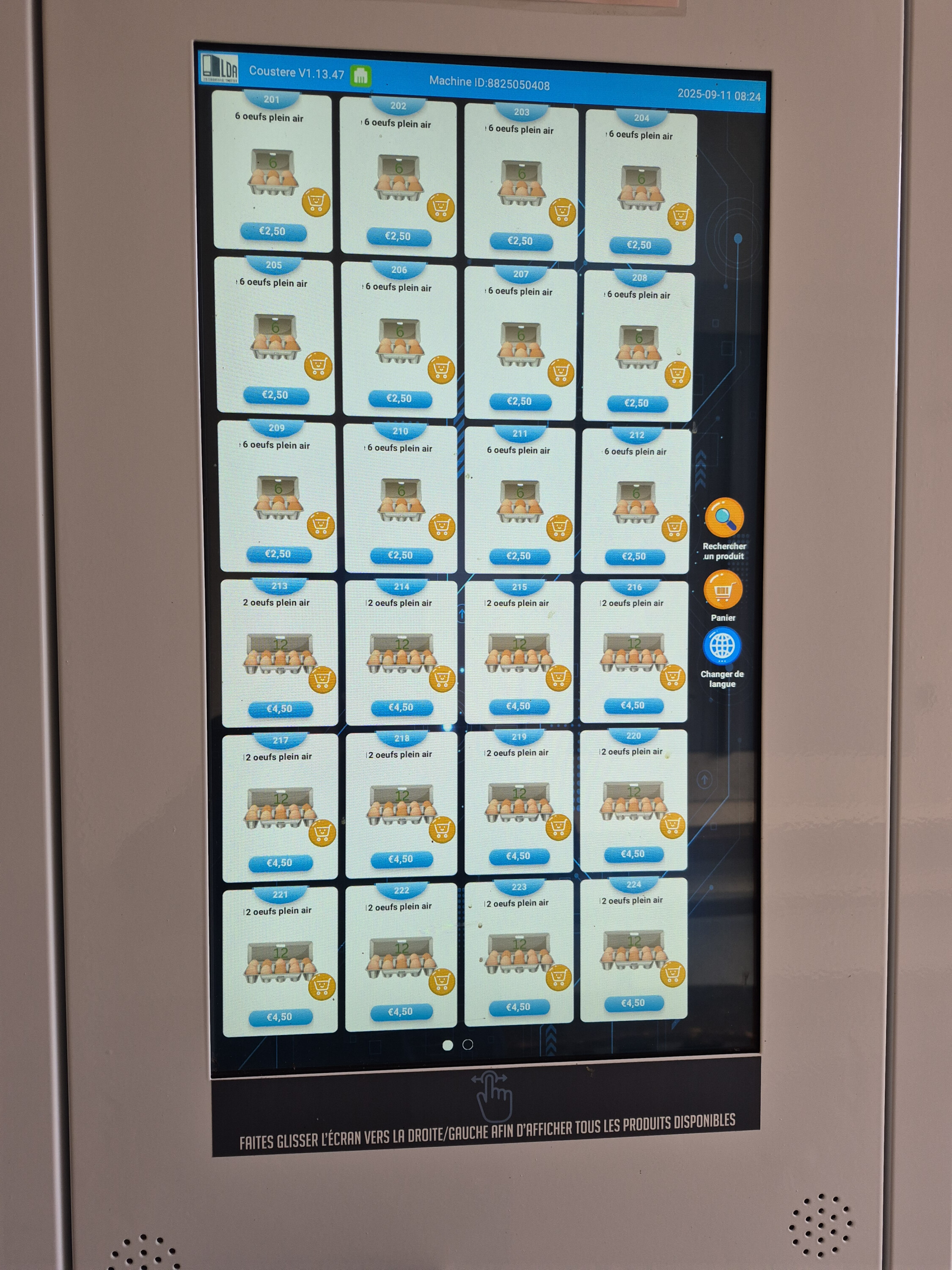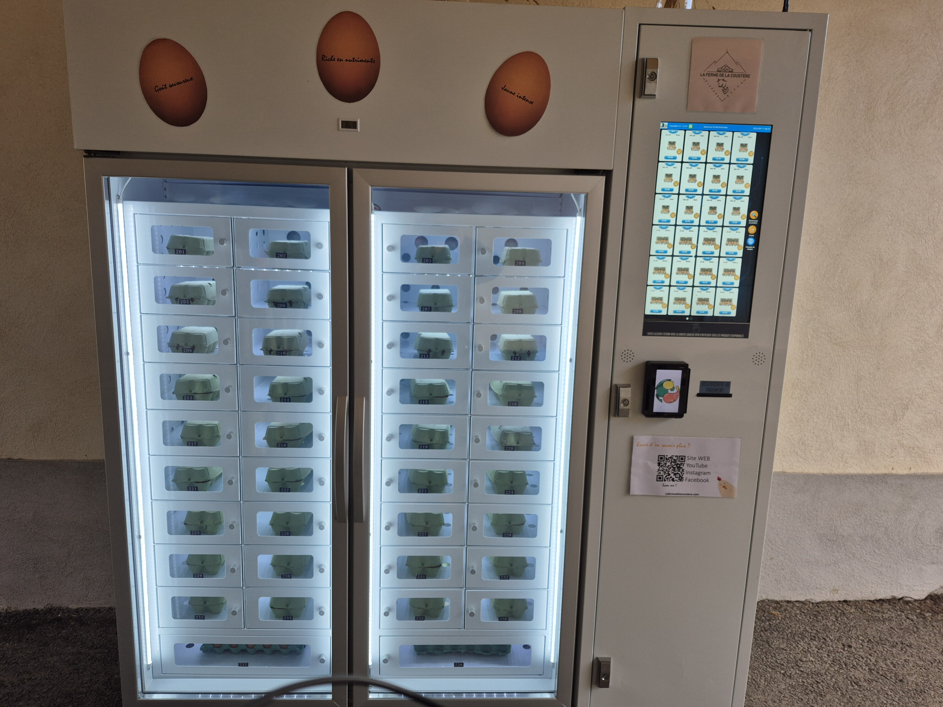 le distributeur d'œufs est en place au cœur du village sous le porche qui mène à l'agence postale de notre commune.