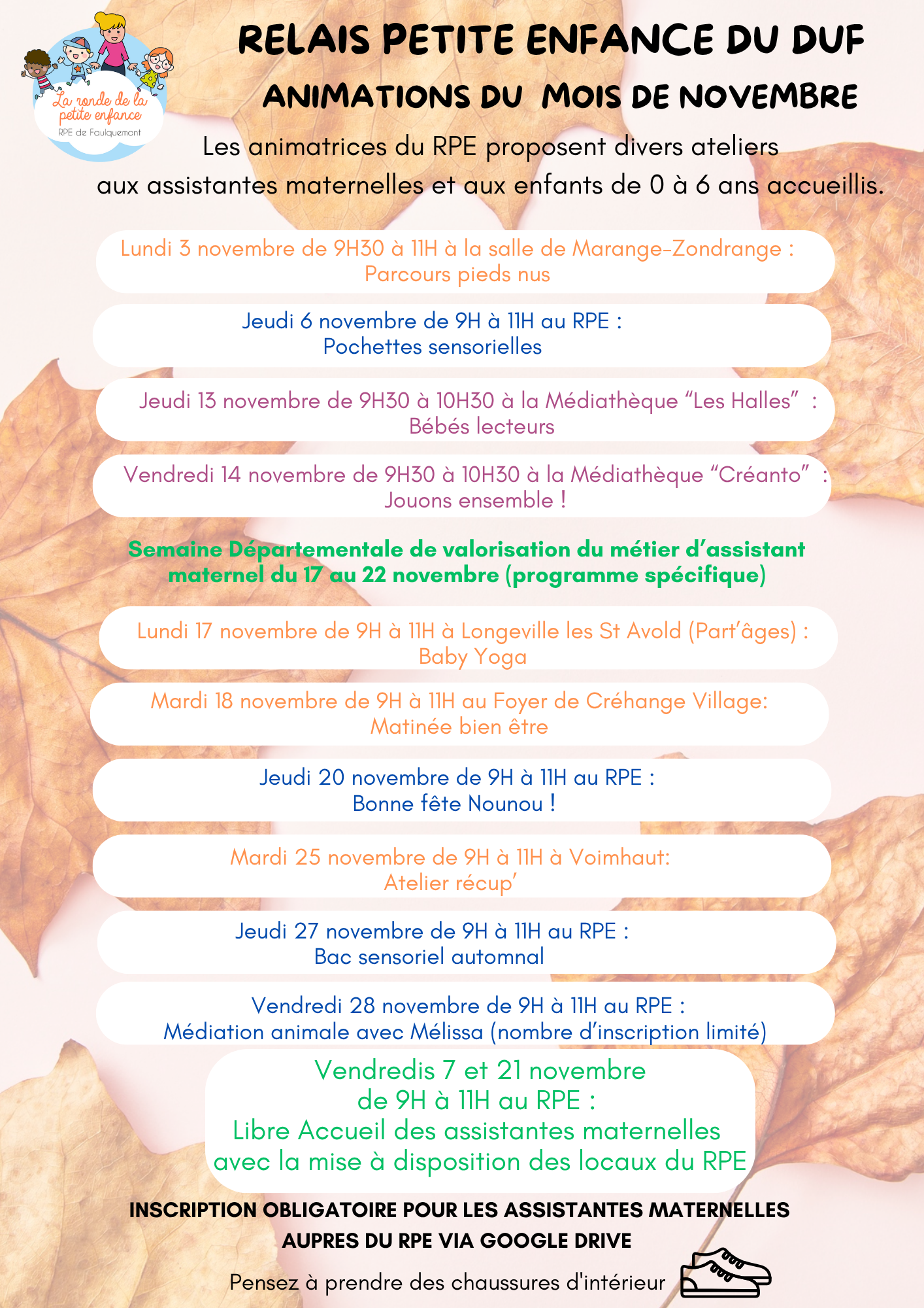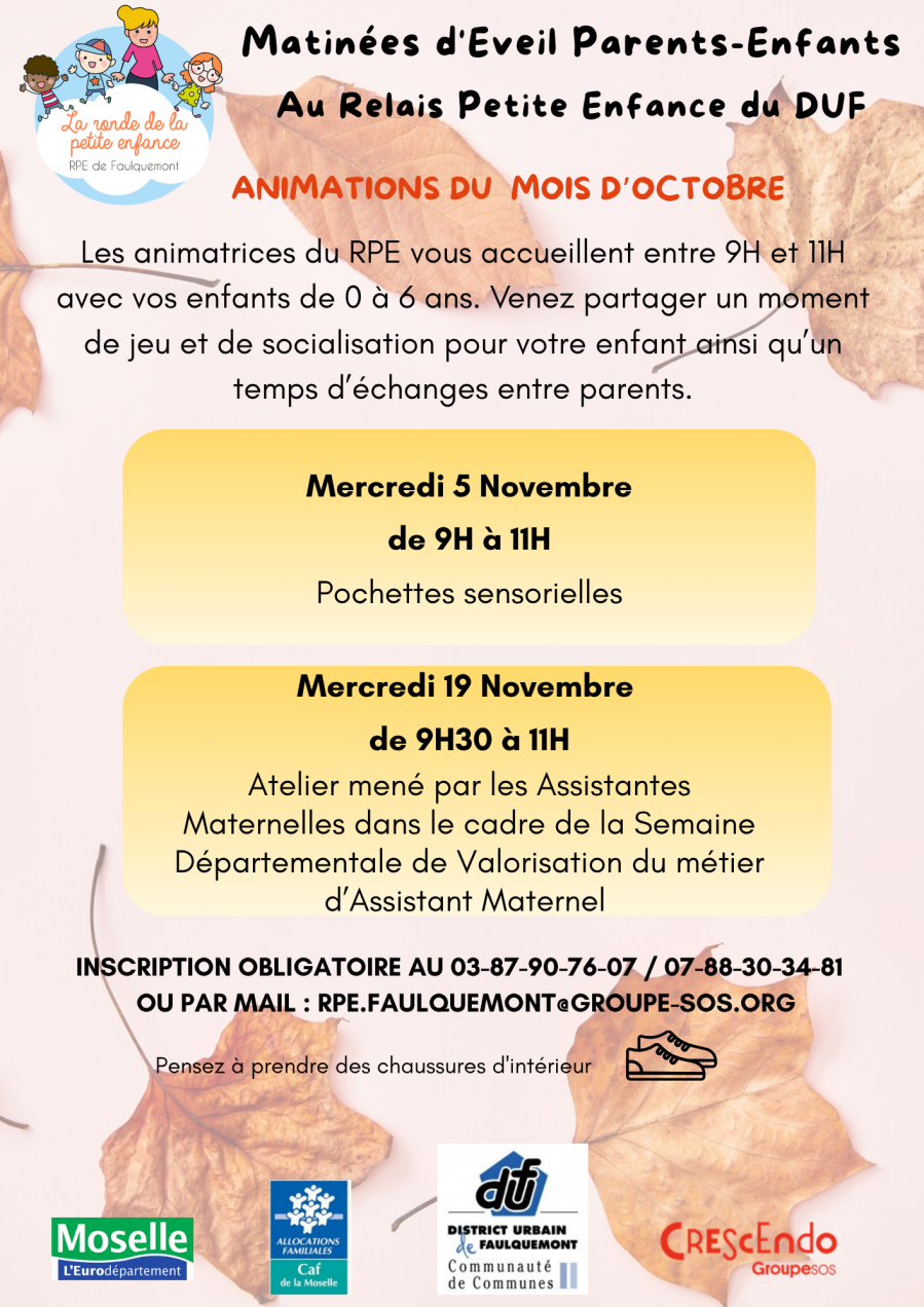 Durant ce mois, se déroulera la Semaine Départementale de Valorisation du Métier d'Assistant Maternel, à cette occasion, le RPE du DUF propose u:
