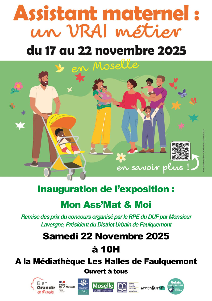 l'inauguration du concours Mon Ass'Mat & Moi qui aura lieu le samedi 22 novembre à 10H à la médiathèque Les Halles de Faulquemont, en présence de Mr Lavergne qui remettra les prix aux 3 tableaux les plus créatifs.