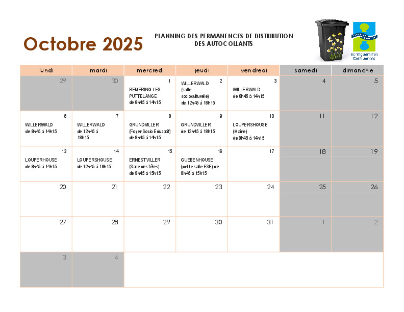 Le calendrier de distribution est consultable sur l’application MONTRI ainsi que sur le site internet de la CASC dans la rubrique téléchargement.