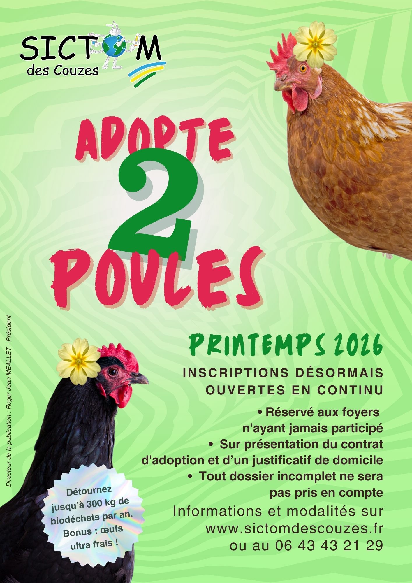 Les informations détaillées se trouvent sur le site de la commune : Adopte 2 poules