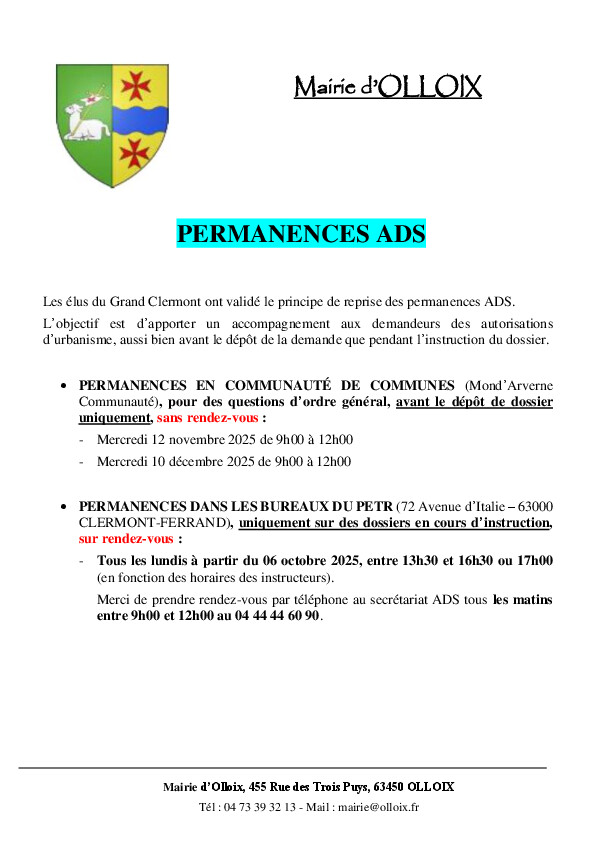 L'enquête publique dans le cadre de l'élaboration du PLUi de Mond'Arverne Communauté se déroulera du 6/10 au 7/11/2025.