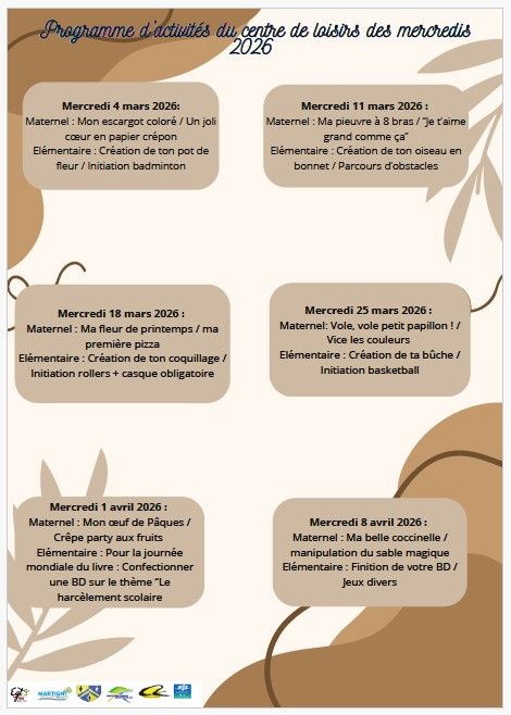 programme d'activité pour le centre du mercredi
