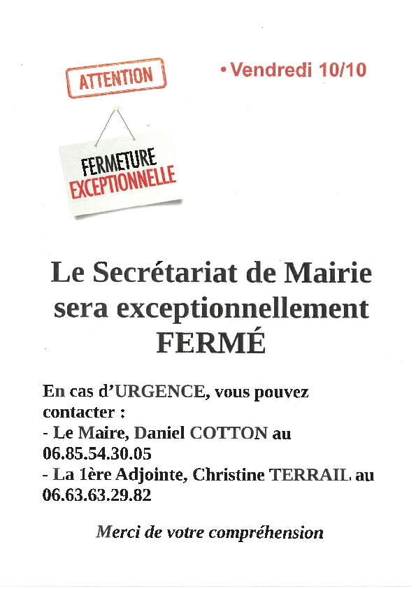 ATTENTION FERMETURE EXCEPTIONNELLE :