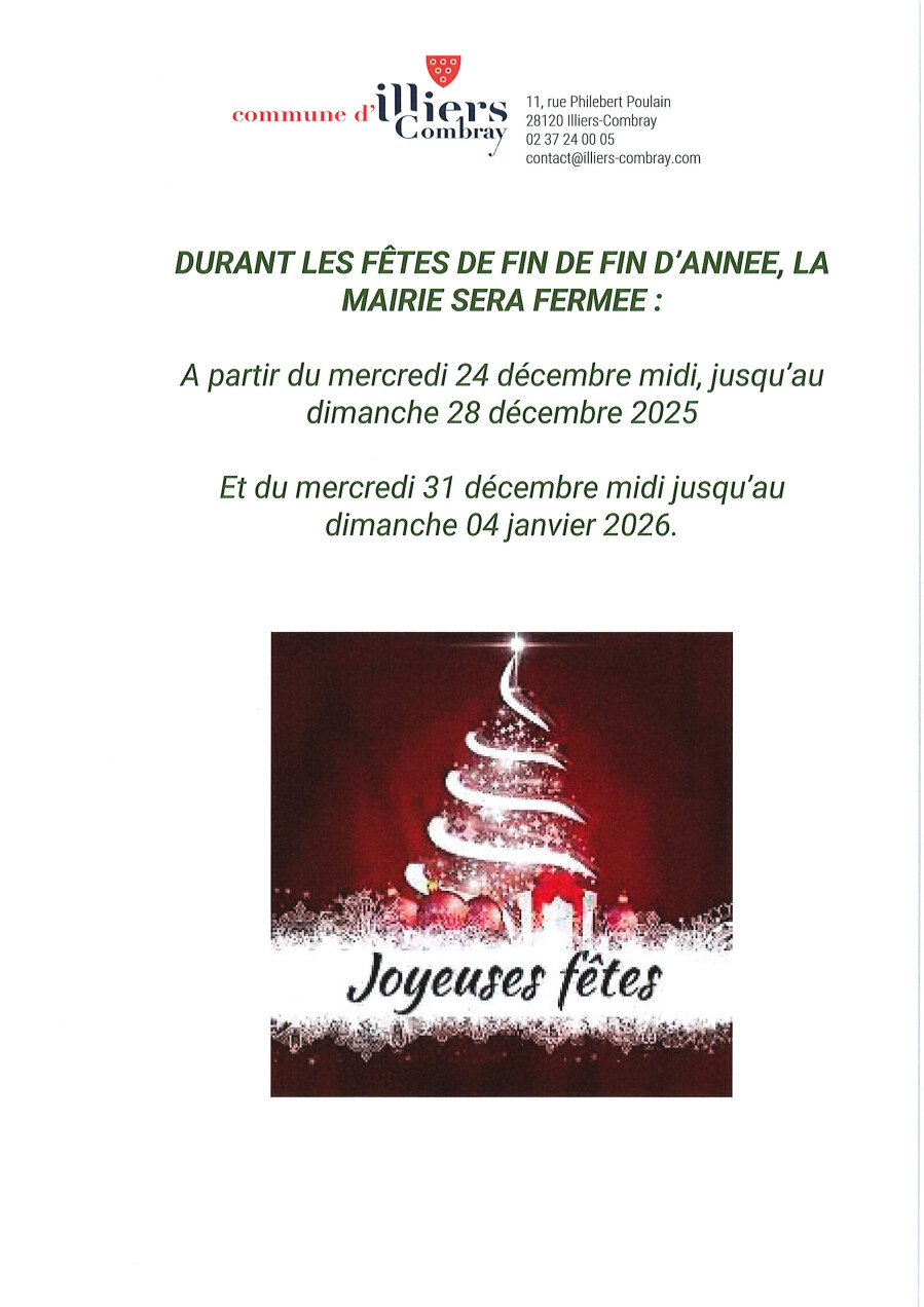 De plus la permanence ne sera pas assurée le Mercredi 31 Décembre