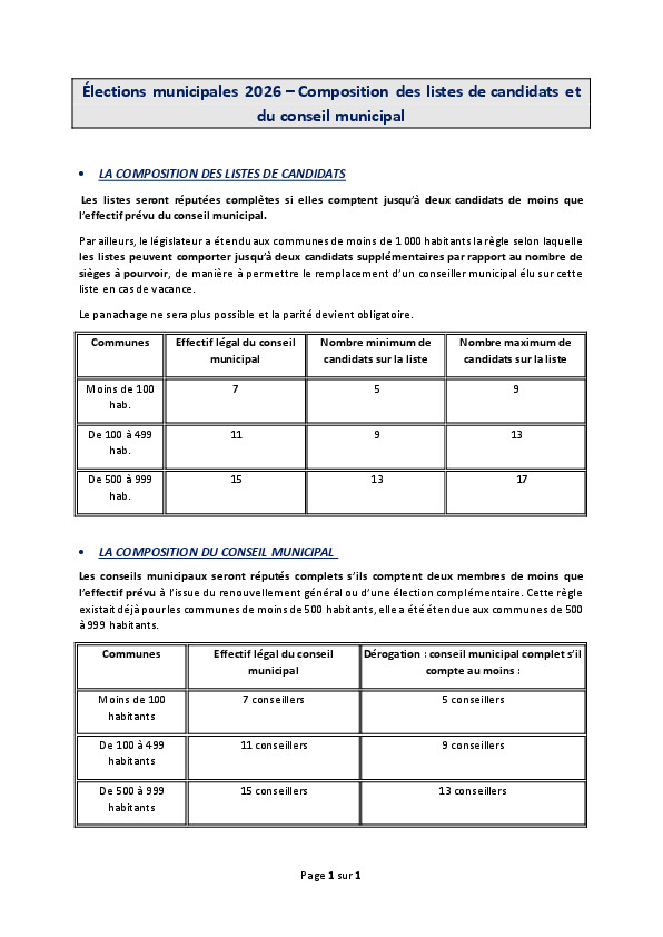 🆕 Nouveau mode de scrutin dans les communes de moins de 1 000 habitantsÀ partir de 2026, en application de la loi du 21 mai 2025, les communes de moins