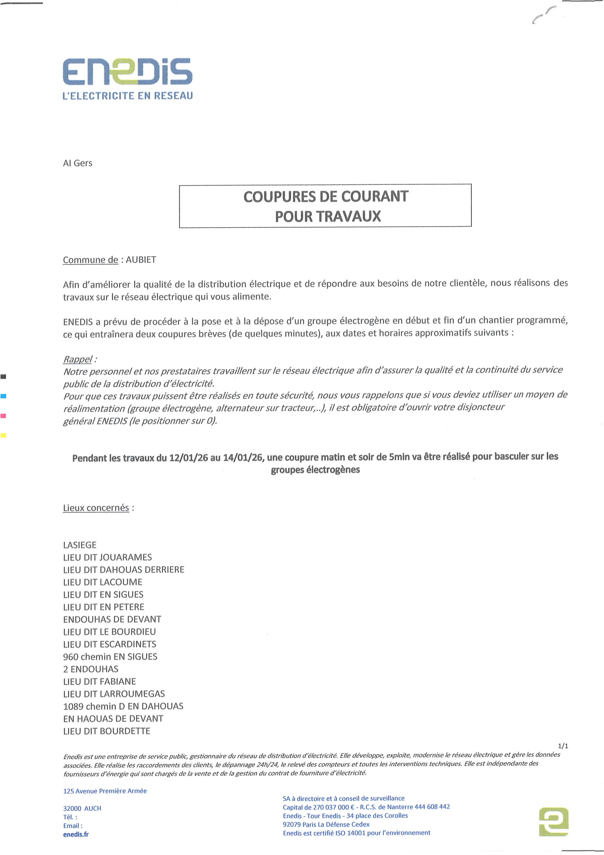 📬 Adresse de la mairie d'Aubiet :