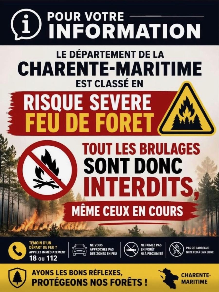 Nous vous rappelons qu'il est également interdit de brûler les déchets verts, les déchets forestiers et les déchets de travaux agricoles.