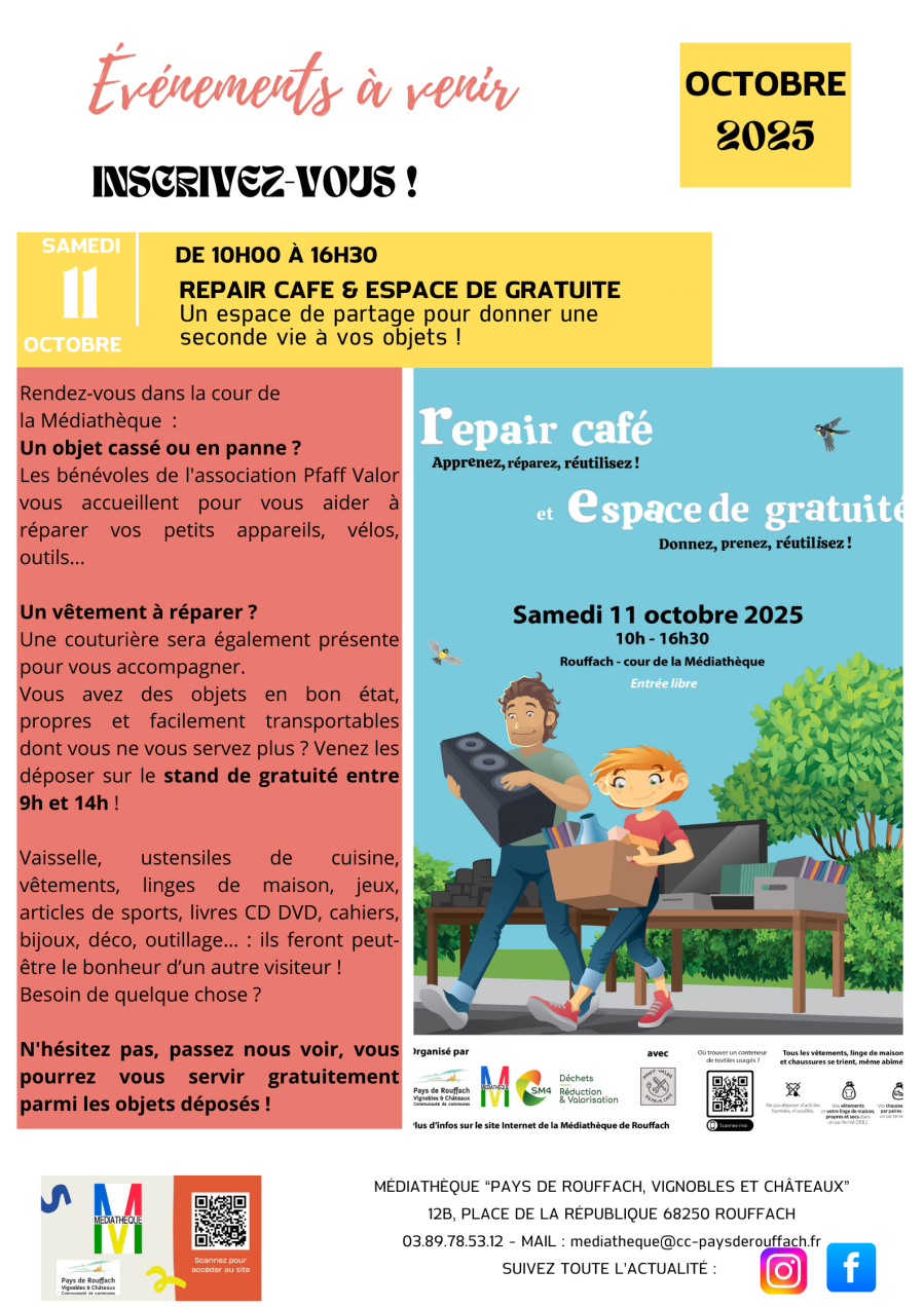 3 ateliers sur inscription, sont organisés sur le territoire du PETR du Pays Rhin Vignoble Grand Ballon pour