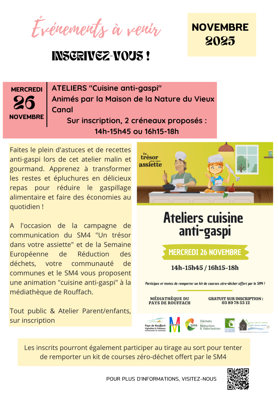 Lundi 03 novembre de 19h à 21h à l'espace jeunesse de Rouffach, 1 rue Thiebaut Walter :