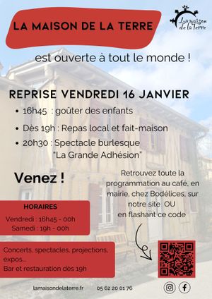 Notez déjà la date de réouverture festive de La Maison de la Terre : le vendredi 16 janvier prochain.