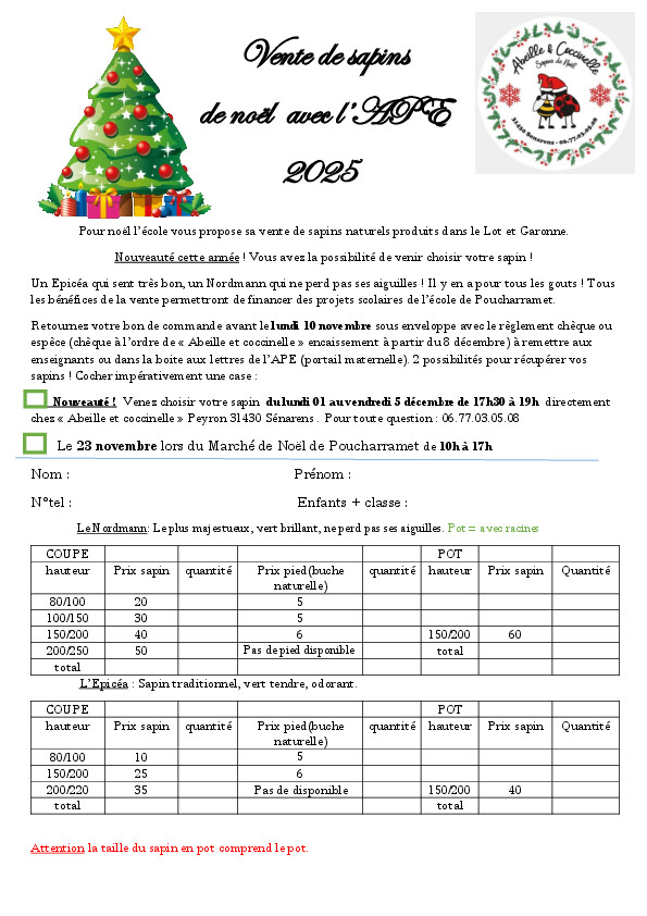 Et quoi de mieux d'avoir un beau sapin pour les fêtes tout en soutenant les projets de l'école !