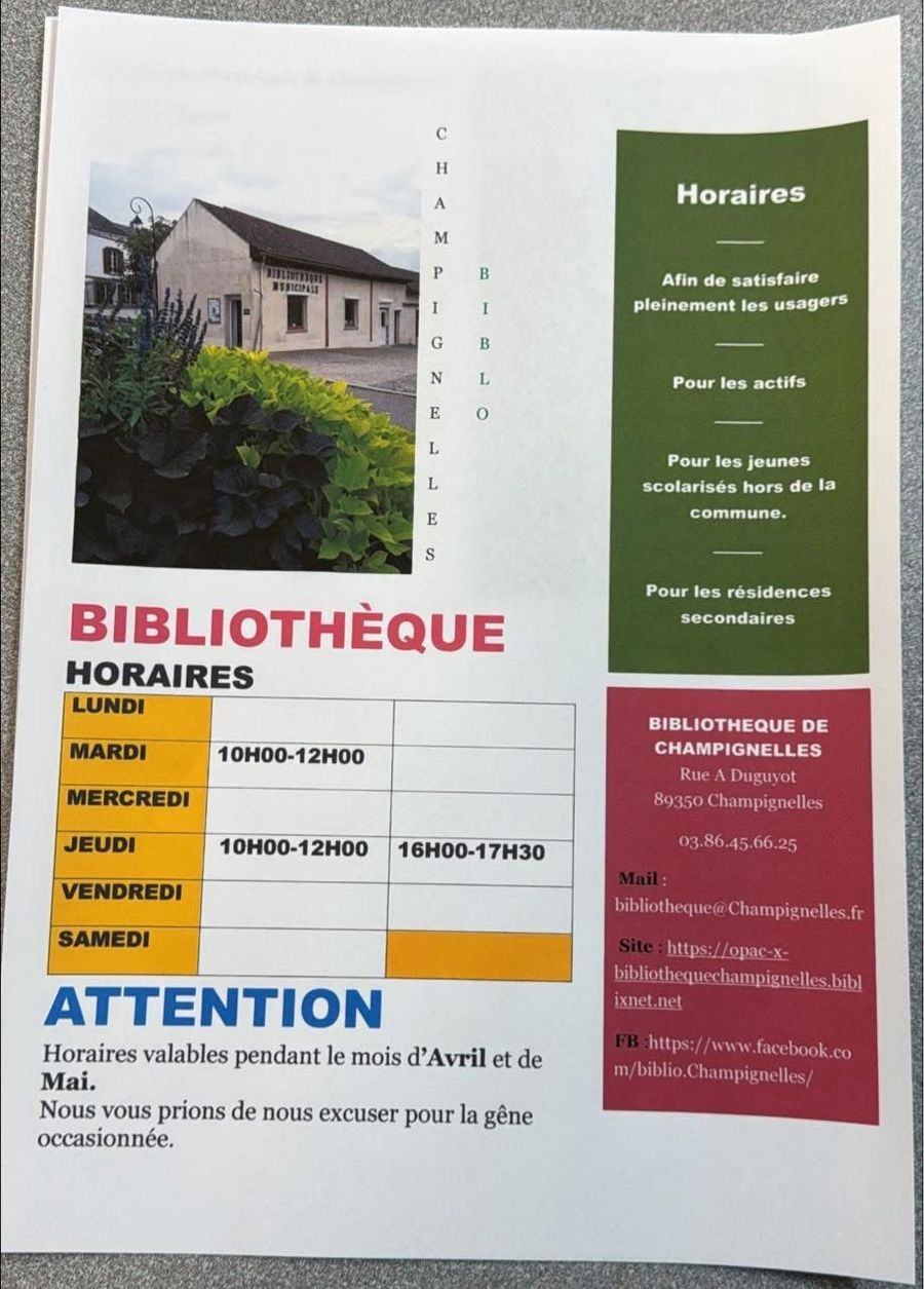 Merci de vous inscrire auprès de Véronique au 03 86 45 10 57